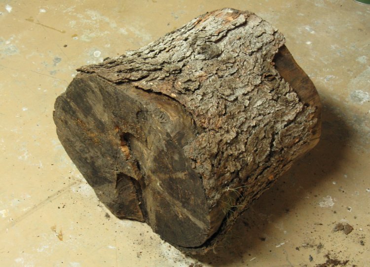Of course the second log being of the same vintage was similarly rotted. I did a bit of considering where I could find another suitably-sized and fresher log (in the middle of winter), but didn't come up with any great ideas.