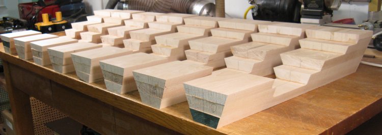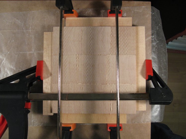 Nine pieces are laminated together here to form the piece that will become the bottom.