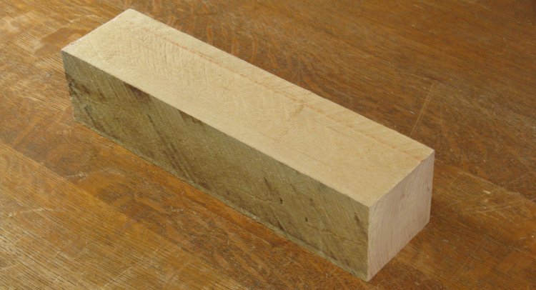 I started with this piece of 2" maple and after squaring the edges, cut it up into pieces just over 1" long.