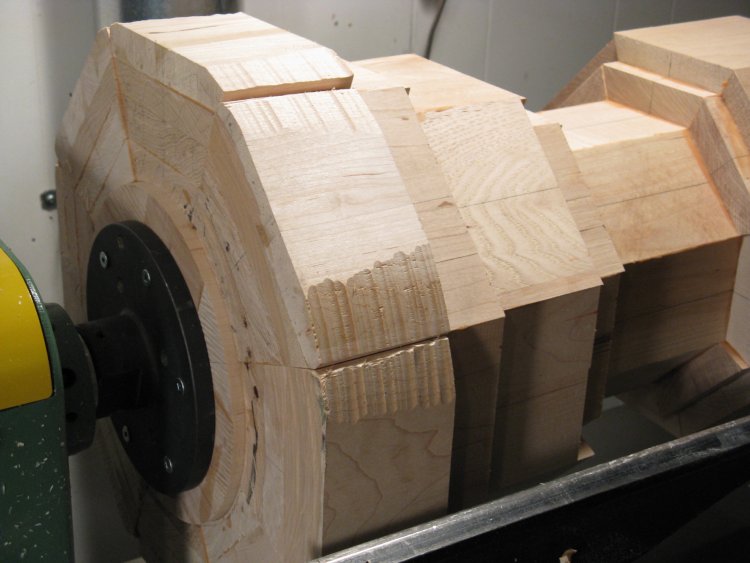 After lifting the wood on and off the lathe a few times, I lugged the piece upstairs and checked the weight. It was about 35 lbs.