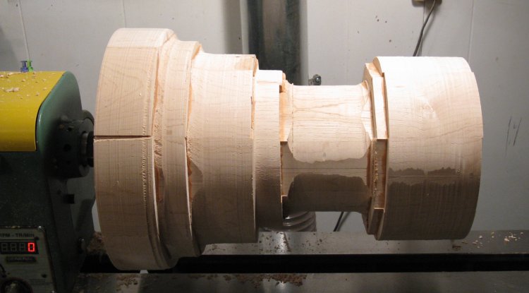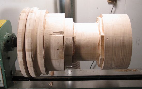 The above shots show the shaping progressing (with liberal use of the big calipers to compare against the desired diameters).