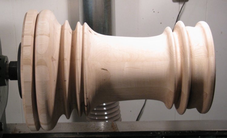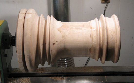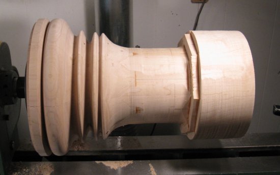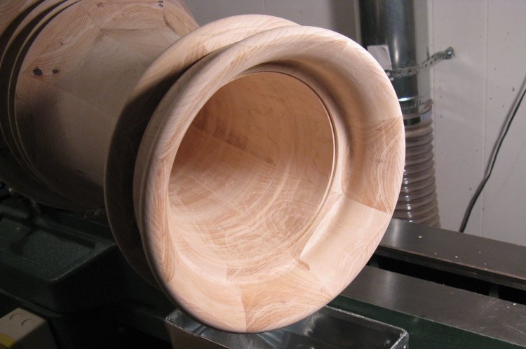 This photo shows the wastebasket off the lathe. It's sort of a milestone, except then it had to go right back on to have the bottom completed.