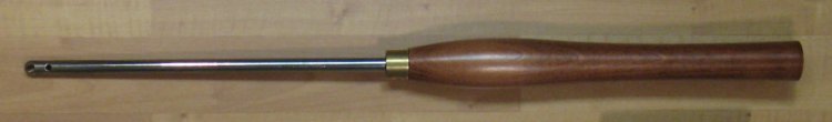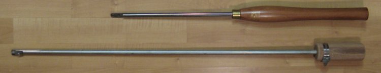 Here's the existing and new tools showing the relative lengths. On the new one I made a rudimentary handle with a scrap of mahogany that I affixed with a hose clamp.