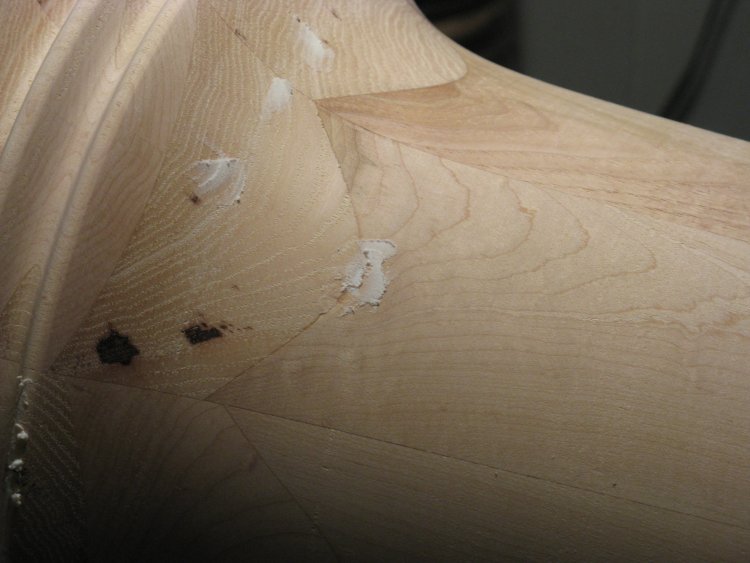 And since this piece was to be painted, there was the freedom to repair any minor problems with some filler. Since most areas were pretty small, I just used standard spackling.