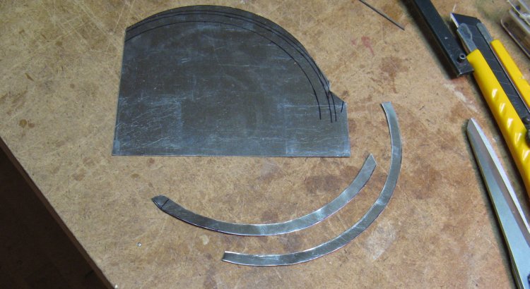 I decided that I would use magnets to hold the frame and cover in place so it could be easily removed for emptying. In order to eliminate any particular alignment of the cover to the body, I wanted to have the cover frame magnetic all around, so I used some 10 mil steel sheet to make arcs of material to be glued in place.