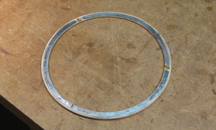 This shows the bottom side of the cover frame. In addition to the steel pieces, short sections of brass tubing for the hinge have been epoxied in place.