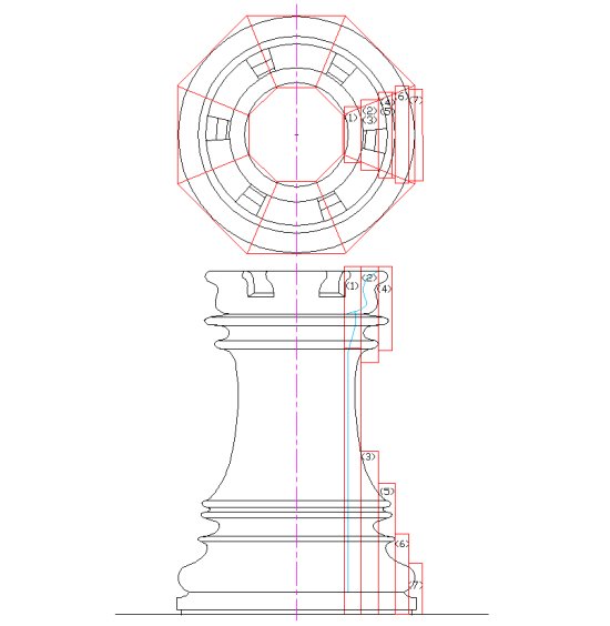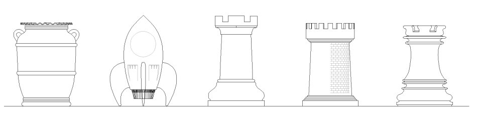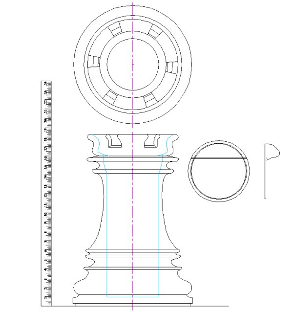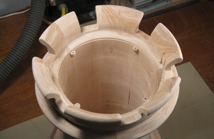 After I decided to make a wastebasket, my natural proclivity for slightly weird things drew me toward modelling it on a real-life object rather than making something artsy (or perhaps it was my natural proclivity for not having any artistic talent). At any rate, I drew up a few candidates for myself and spouse to compare and we decided on the turned chess rook, largely since it looked most like what it was.
