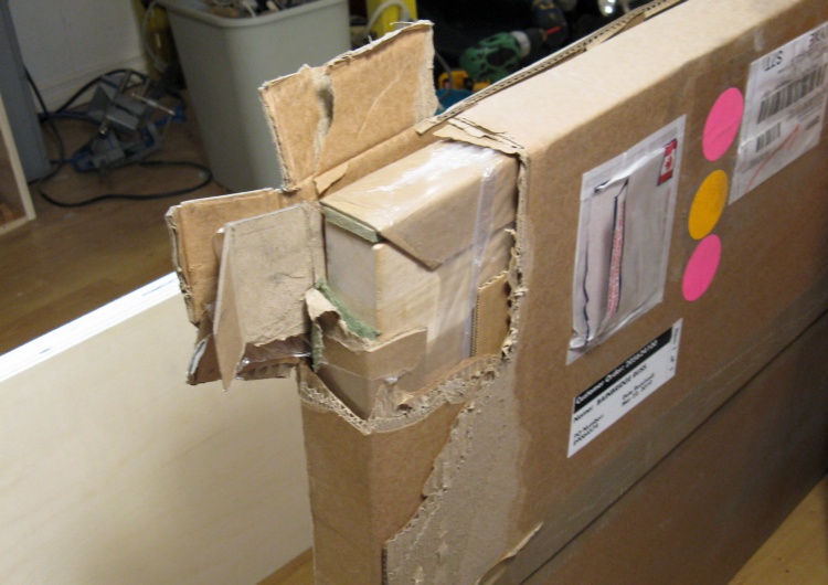 However it was so well packed that it took several minutes to tear off the double-thick cardboard, get through the corner press-board material, then the plastic, and finally some wooden edge protection. I had a jacknife, but I was being careful not to score the wood inside. When we finally got in I was relieved to see that it looked just like it should.