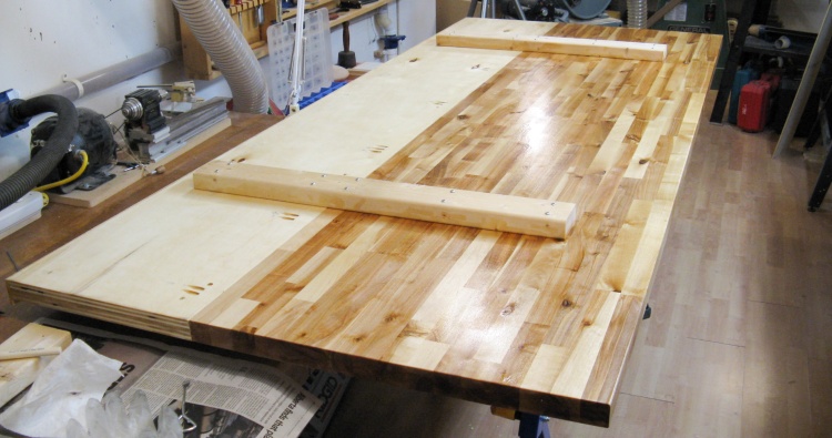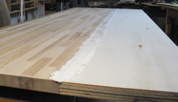 For the back part of the new top I wanted some tougher plywood so that the hardness would be closer to the laminated section. Home Depot had some 3/4" plywood made of Aspen which I hadn't seen before but sounded like a good Saskatchewan product (though I suspect it comes from elsewhere).