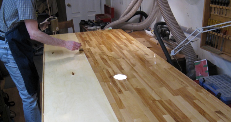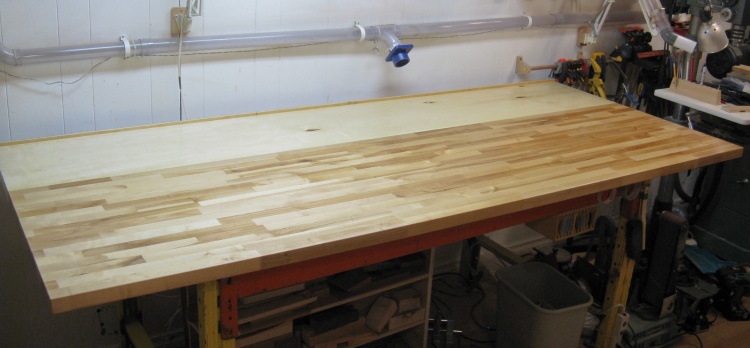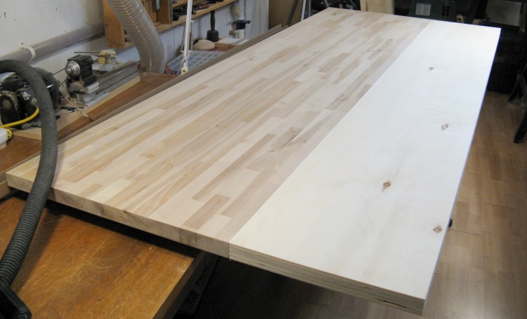 I ordered a section of laminated birch countertop for the front section of the top. It was 1-1/2" thick and a bit longer than I needed but only 24" deep. When that came in, we went to pick it up. After loading it into the vehicle, I thought we'd better check to ensure that what was in the packaging was what we actually ordered (yes, we had dealt with Home Depot before).
