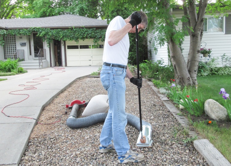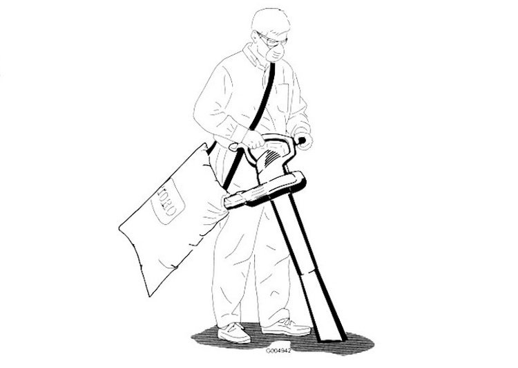 A happier vacuuming guy, sans mask, blower weight and close-by motor